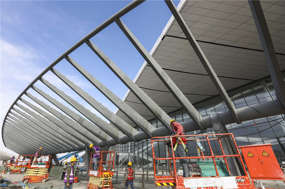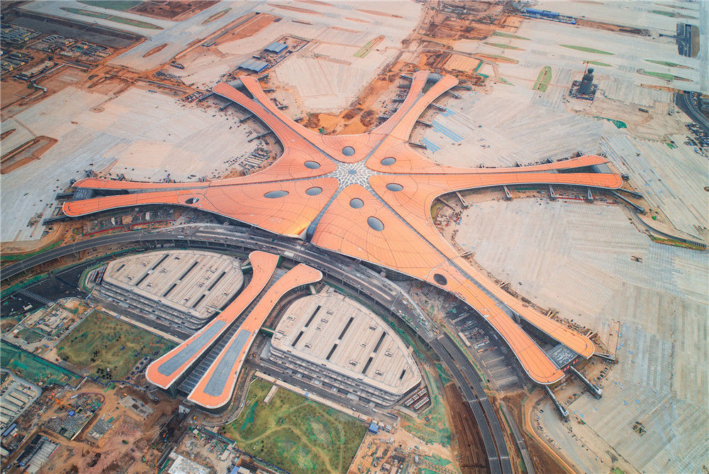 2019年5月24日,北京,新機(jī)場建設(shè)距離竣工時(shí)間還有37天,工程進(jìn)入倒計(jì)時(shí)。機(jī)場開建至今不到5年時(shí)間,機(jī)場施工工程將于6月底竣工,將于9月底投入運(yùn)營,該機(jī)場有望成為世界上規(guī)模最大的機(jī)場之一。任振朝/千龍圖像/視覺中國