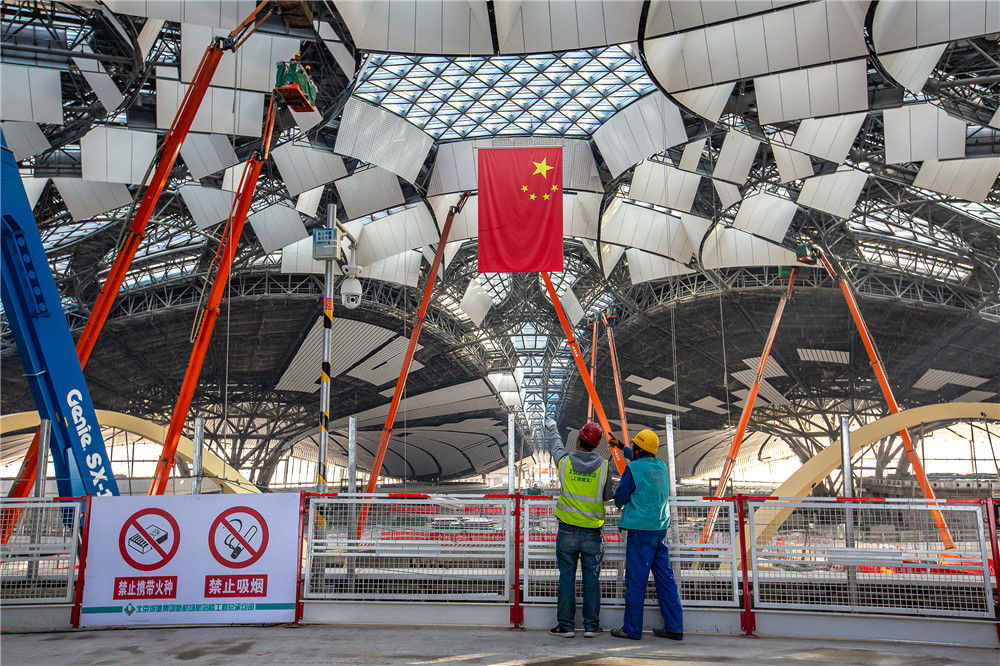 2019年1月20日,北京,探訪北京大興國際機(jī)場航站樓,建設(shè)工地正在如火如荼地有條不紊地建設(shè)之中。丁幫學(xué)/千龍圖像/視覺中國