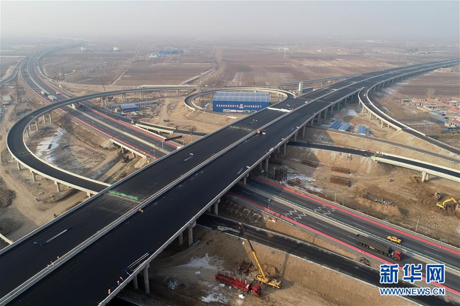 這是1月3日拍攝的北京大興國際機(jī)場北線高速公路廊坊段王場互通樞紐(無人機(jī)照片)。新華社記者牟宇攝