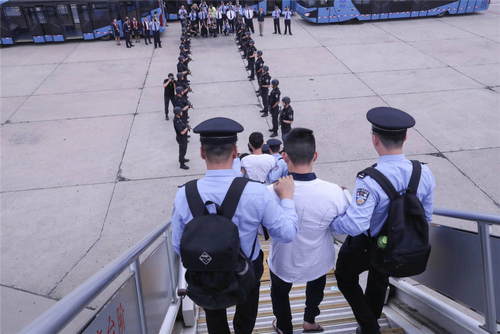 2019年6月7日,在北京首都國際機(jī)場,94名冒充公檢法機(jī)關(guān)工作人員實(shí)施電信網(wǎng)絡(luò)詐騙的中國臺灣籍犯罪嫌疑人被我國公安機(jī)關(guān)從西班牙押解回國。這是我國首次從歐洲大規(guī)模押回電信網(wǎng)絡(luò)詐騙犯罪嫌疑人。新華社記者殷剛攝