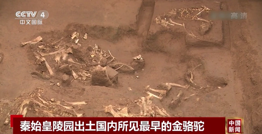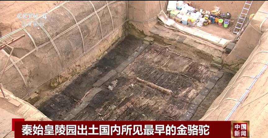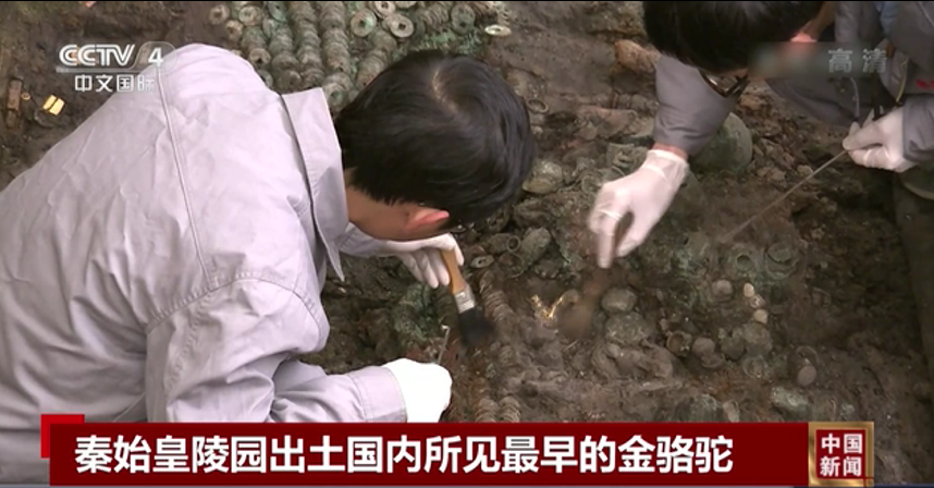 近日,秦始皇帝陵博物院公布最新考古成果:考古人員在秦陵在秦陵外城西側(cè)的陵區(qū),對一座編號為一號墓葬(QLCM1)的“中字形”墓葬進(jìn)行了發(fā)掘,取得重要收獲。該墓為目前發(fā)現(xiàn)秦代規(guī)模最大、等級最高、保存最完好的大型墓葬,填補(bǔ)了秦代高等級墓葬的空白。出土了目前國內(nèi)所見最早的單體金駱駝。