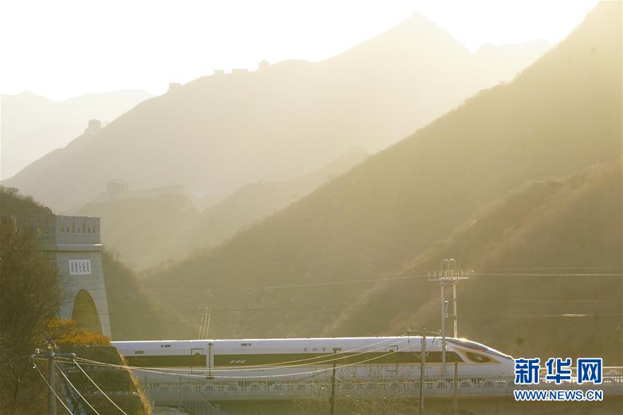 2019年12月30日,G2418次列車駛過(guò)居庸關(guān)長(zhǎng)城。當(dāng)日,北京至張家口高速鐵路開(kāi)通運(yùn)營(yíng)。 新華社記者 邢廣利 攝
