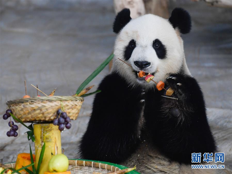2019年12月31日,大熊貓“貢貢”在“擼串”。 當(dāng)日是2019年最后一天,海南熱帶野生動(dòng)植物園的工作人員為園區(qū)內(nèi)大熊貓“貢貢”“舜舜”準(zhǔn)備了用葡萄、南瓜、竹筍等果蔬制作的“火鍋串串香”,讓它們用“擼串”的方式迎接新年的到來(lái)。 新華社記者 楊冠宇 攝