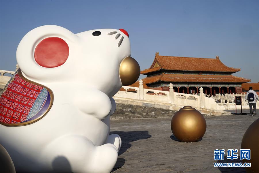 2019年12月27日在北京故宮太和門廣場(chǎng)拍攝的“吐寶鼠”。 由故宮博物院、騰訊出品的視頻節(jié)目《故宮賀歲》將于2020年1月1日正式上線,節(jié)目每周1集,每集時(shí)長30分鐘,計(jì)劃推出5集。節(jié)目里,主持人將與專家、嘉賓等一起在故宮探尋傳統(tǒng)過大年的習(xí)俗。 新華社記者 金良快 攝