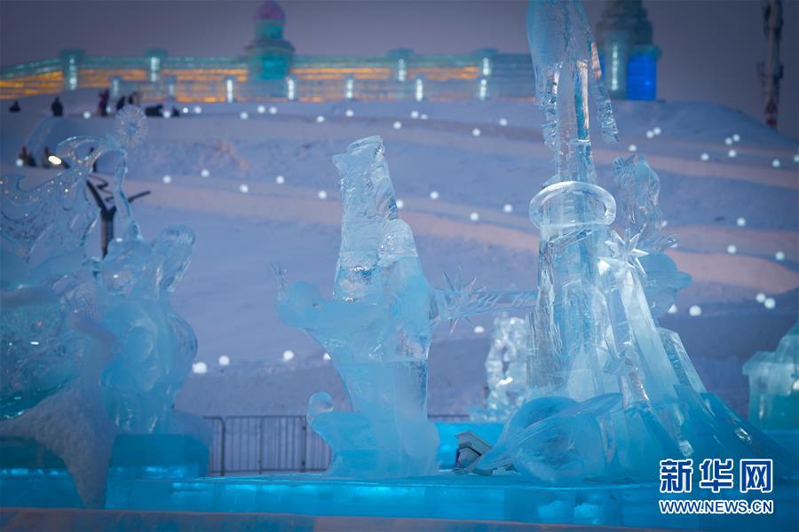 這是哈爾濱冰雪大世界園區(qū)中的景觀(1月5日攝)。每到冬季,天氣寒冷的冰城哈爾濱陸續(xù)迎來各類冰雕雪雕賽事。從2019年12月7日起,采冰工人們?nèi)找共杀\冰、冰景雪雕藝術(shù)家精心雕琢,這些“冰雪造夢者”們在嚴寒天氣中辛苦付出,讓一座“冰雪之城”在松花江畔拔地而起,向來自世界各地的游客展現(xiàn)浪漫絢麗的冰雪奇觀。新華社記者王松攝