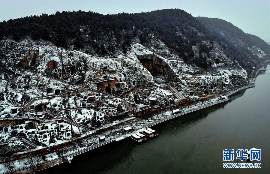 當日,雪后的河南洛陽龍門石窟景區(qū)銀裝素裹,一幅天然的水墨畫卷徐徐展開。