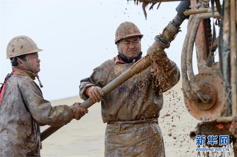 1月13日,鉆井工在連接鉆桿。地球物理勘探是油氣開發(fā)的第一步,相當(dāng)于給地球做CT。物探工人按照嚴格的測線部署,在相應(yīng)位置鉆井,然后實施地震,采集地震波數(shù)據(jù)??蒲腥藛T通過數(shù)據(jù)組成的“CT片”,就能夠清晰地“看”到地下的地質(zhì)結(jié)構(gòu),判斷哪里埋藏有石油或者天然氣。2019年10月,東方地球物理勘探有限責(zé)任公司塔里木物探處2113隊進入新疆塔克拉瑪干沙漠腹地,開始中古14-21、塔中2兩個區(qū)塊的三維地震勘探。近2000名物探工人將在1000平方公里的范圍內(nèi)一直工作到2020年4月,這也意味著他們將在塔克拉瑪干沙漠腹地連續(xù)度過第14個除夕夜。蘊藏著豐富石油天然氣資源的新疆塔克拉瑪干沙漠有“死亡之?!敝Q,氣候干燥,年降水量在50毫米以下,冬季地表最低溫度超過零下30攝氏度,是世界油氣勘探難度最大的地區(qū)之一。為避開風(fēng)季,物探工人每年9、10月份進入沙漠,一直工作到來年4月,夜以繼日與黃沙、嚴寒為伴,用辛勤的汗水,為祖國找油找氣。新華社記者丁磊攝