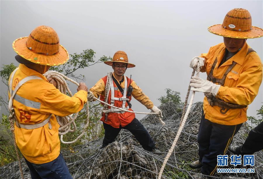 1月14日,百色工務(wù)段白水河橋隧工區(qū)班組工長王勇(中)在穿戴安全裝備,準備下山崖巡查。在中國鐵路南寧局集團公司百色工務(wù)段白水河橋隧工區(qū),有一個由14名工人組成的班組。他們常年像“爬山虎”一樣行走攀爬在地形險峻、云霧繚繞的高山上,負責南昆鐵路轄區(qū)路段的搜山掃石工作,清除一切可能危害鐵路行車安全的因素,保障旅客出行安全。新華社記者張愛林攝