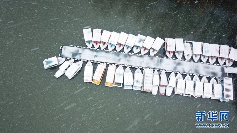 這是1月15日拍攝的合肥市包公園雪景(無(wú)人機(jī)照片)。 當(dāng)日,安徽省合肥市迎來(lái)降雪天氣。雪中的合肥市包公園景色別致。 新華社記者 張端 攝