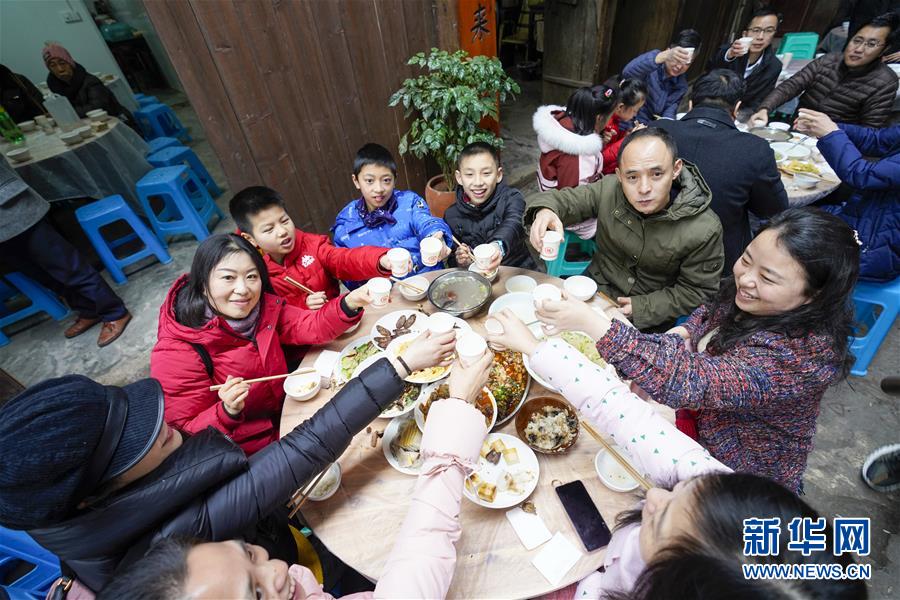 2019年1月26日,重慶中山古鎮(zhèn),880桌“千米長(zhǎng)宴”5萬(wàn)人共品年味。