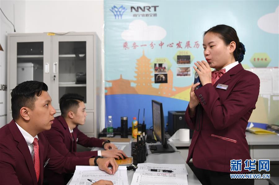 劉慧君在南寧軌道交通1號線上駕車行駛(1月16日攝)。