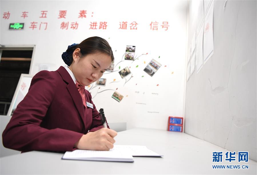 今年24歲的劉慧君是南寧軌道交通1號線上的一名列車司機,也是南寧首批地鐵女司機隊伍中的一員。雖然年齡不大,她工作至今駕駛里程已超過8萬公里。由于工作的原因,當許多人還在熟睡當中,劉慧君已進入緊張的工作狀態(tài)。填寫司機日志,進行酒精測試,領取行車物品……完成一系列準備工作后,她走進列車駕駛室開始新一輪班次的工作。