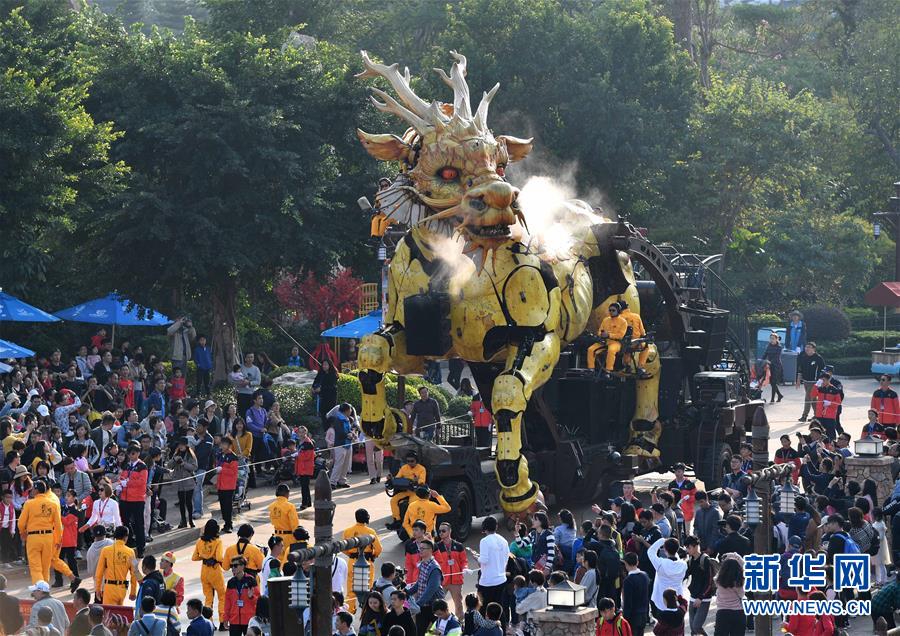 1月18日,大型機(jī)械裝置藝術(shù)品“龍馬精神”在珠海長(zhǎng)隆海洋王國(guó)巡游展示。