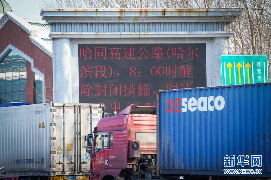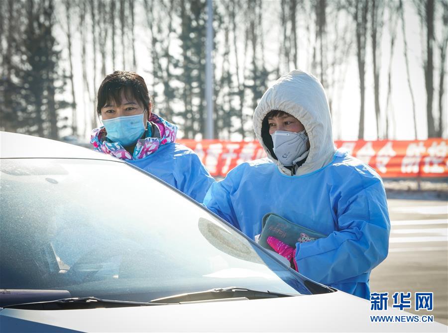 2月24日,工作人員在哈同高速公路哈爾濱收費(fèi)站為車(chē)輛人員登記。 新華社記者 王松 攝