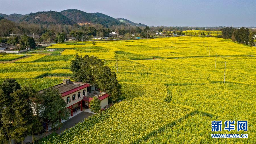 2月25日在四川省崇州市拍攝的油菜花田(無人機(jī)照片)。 新華社記者 王曦 攝