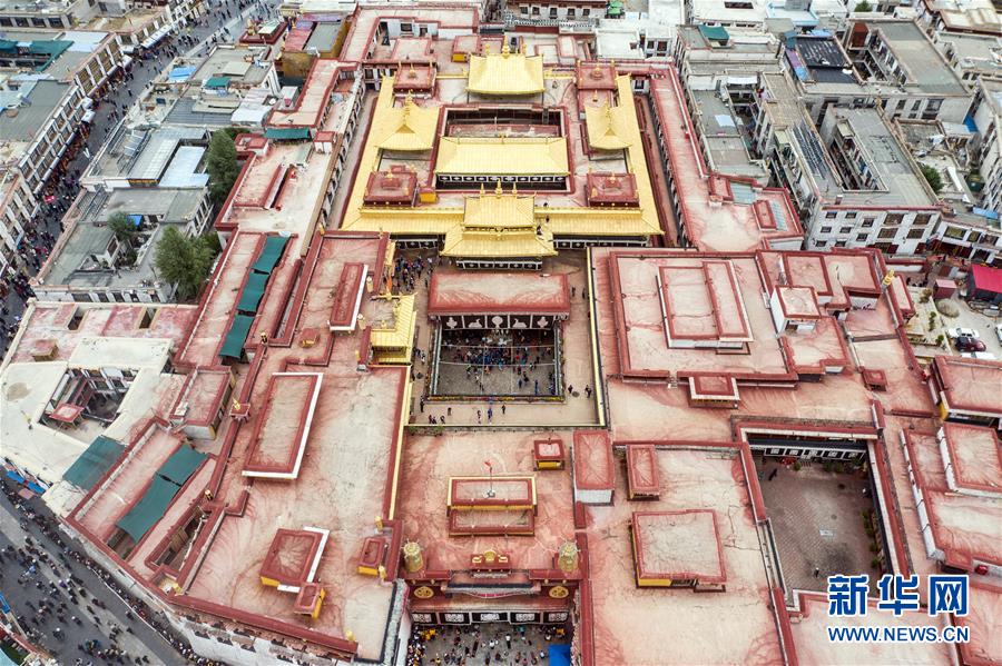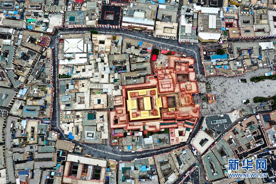 8月10日無人機(jī)拍攝的大昭寺。新華社記者普布扎西攝