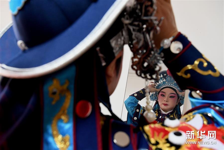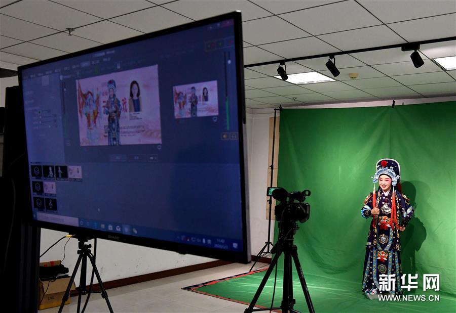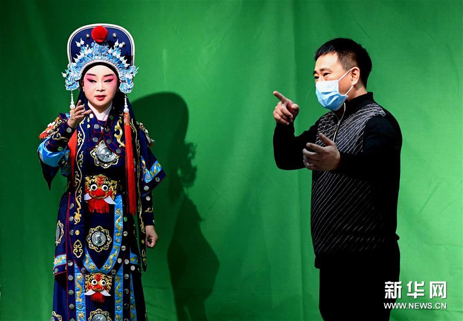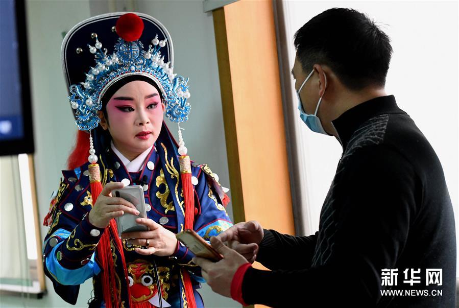 3月3日,李金玲在鄭州文化館通過(guò)直播的形式進(jìn)行帶妝表演豫劇《花木蘭》選段。李金玲是鄭州工程技術(shù)學(xué)院音樂(lè)舞蹈學(xué)院的教授,也是豫劇常派弟子。14歲開始學(xué)習(xí)豫劇的她師從豫劇大師常香玉的次女陳小香。多年來(lái),除了本職工作教學(xué)外,她還作為文化志愿者,到各地義務(wù)表演、授課,致力于豫劇的傳承與發(fā)展。疫情防控期間,鄭州文化館展開線上文藝戰(zhàn)“疫”,開通網(wǎng)絡(luò)直播平臺(tái),李金玲也作為志愿者走進(jìn)“直播間”,進(jìn)行帶妝表演和教學(xué),精彩的“云”上表演吸引了不少戲迷的關(guān)注?!霸谶@個(gè)特殊時(shí)期,通過(guò)直播的形式為大家表演,希望可以讓更多的人喜歡和了解豫劇,感受它獨(dú)特的魅力。”李金玲說(shuō)。新華社記者 李安 攝