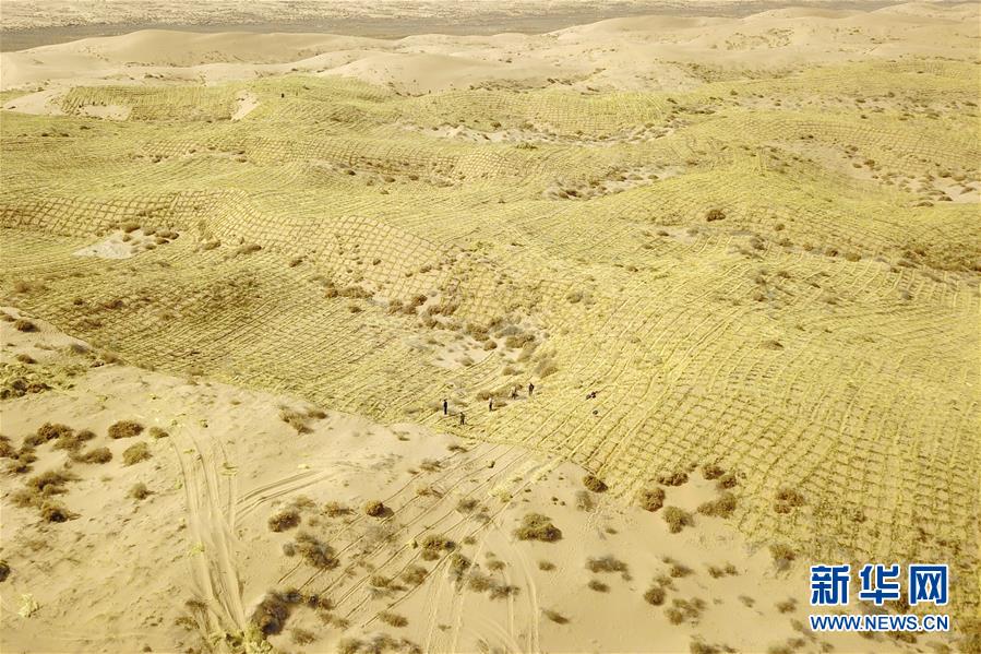 3月5日,在古浪縣北部沙區(qū)旱麻崗治沙點(diǎn),群眾扎草方格壓沙(無(wú)人機(jī)照片)。初春時(shí)節(jié),在騰格里沙漠南緣的甘肅省武威市古浪縣,當(dāng)?shù)馗刹柯毠ぜ鞍瞬缴沉謭?chǎng)治沙人共同在縣城北部沙區(qū)旱麻崗治沙點(diǎn)開展春季治沙勞動(dòng)。新華社記者 范培珅 攝