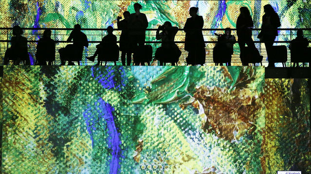 2月27日,在法國(guó)巴黎,人們?cè)凇稄哪?、雷諾阿到夏加爾:地中海之旅》光影藝術(shù)沉浸展的媒體預(yù)展上參觀。《從莫奈、雷諾阿到夏加爾:地中海之旅》光影藝術(shù)沉浸展將于2020年2月28日至2021年1月3日在法國(guó)巴黎舉行。展覽利用數(shù)碼投影技術(shù)為觀眾展示包括莫奈、雷諾阿、夏加爾等在內(nèi)的20位藝術(shù)大師關(guān)于地中海題材的代表作,讓觀眾沉浸在從印象派到現(xiàn)代主義畫作的視聽享受中。新華社記者高靜攝