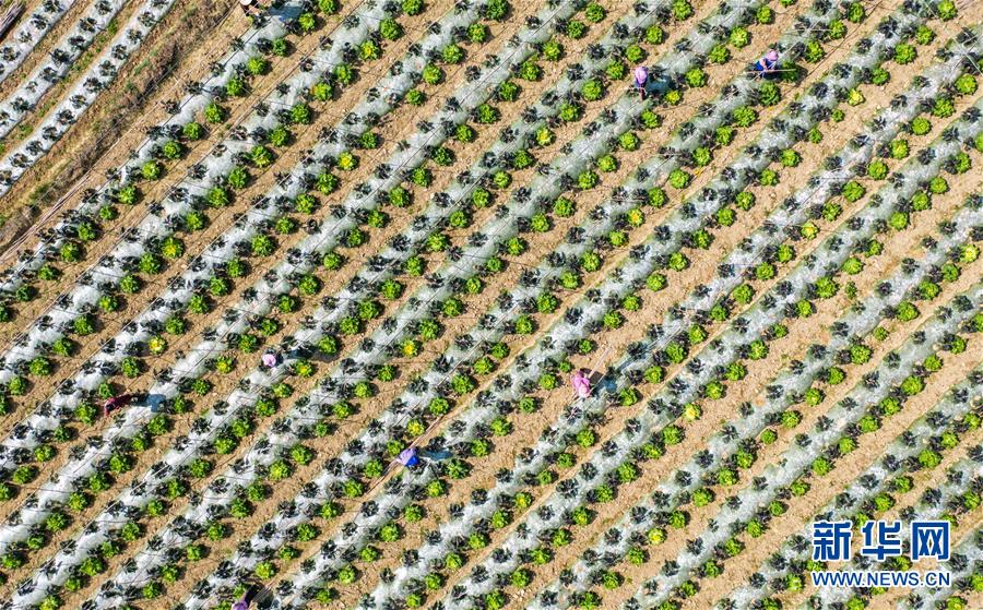 3月8日,貴州省羅甸縣龍坪鎮(zhèn)羅化村村民在田地里勞作(無(wú)人機(jī)照片)。