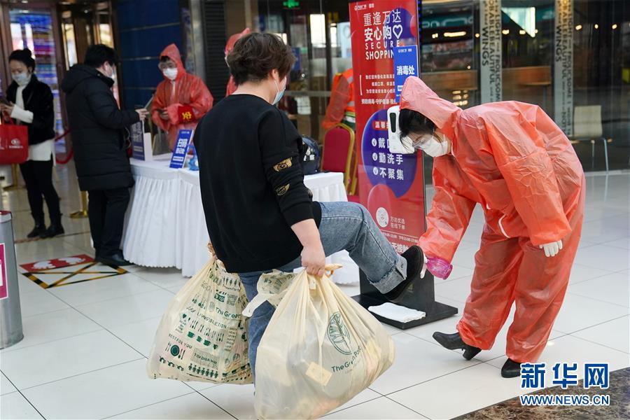 3月13日,在哈爾濱香坊萬達(dá)廣場內(nèi),工作人員在給進(jìn)店顧客消毒。 近日,哈爾濱市多家大型商場陸續(xù)恢復(fù)營業(yè)。這些恢復(fù)營業(yè)的商場采取多種措施,從嚴(yán)細(xì)致做好疫情防控和安全風(fēng)險(xiǎn)防范工作,為廣大顧客提供安全放心的購物空間。 新華社記者 王建威 攝