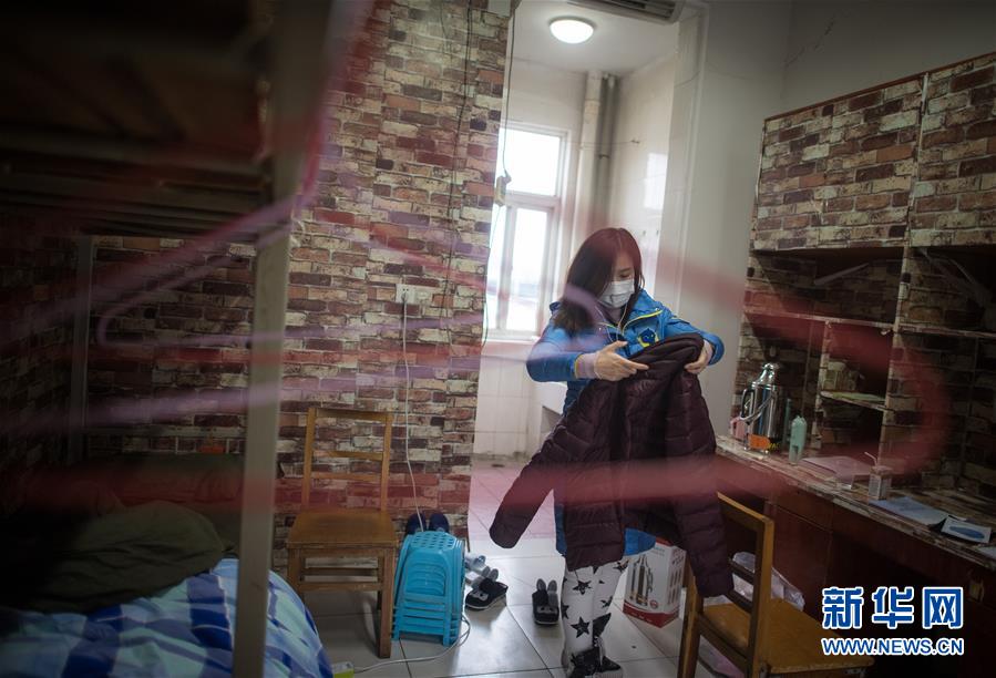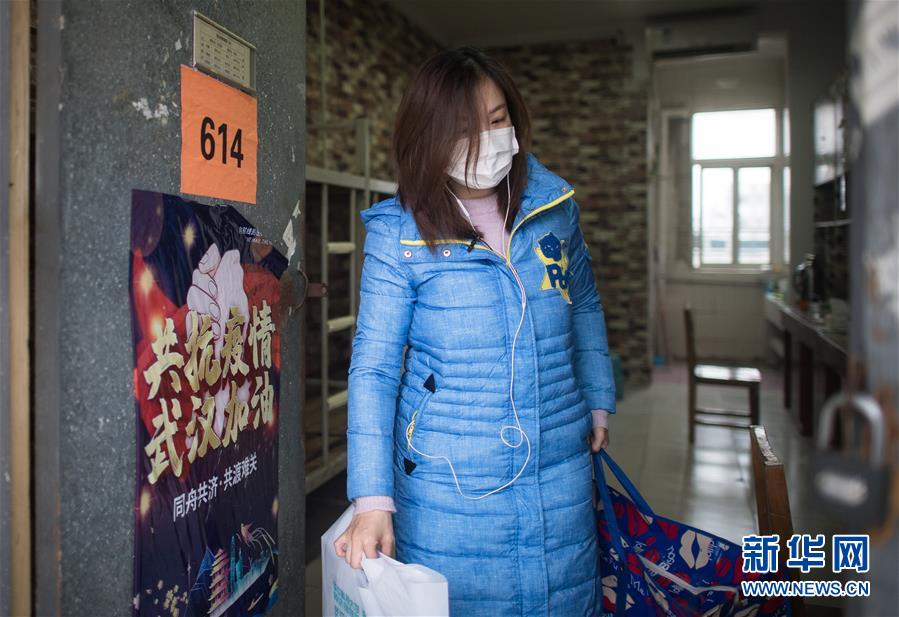 3月12日,黎婧在收拾行李準(zhǔn)備出發(fā),志愿者在門旁等候。 3月12日,插畫師黎婧和84位病友離開自己居住的武漢軟件工程職業(yè)學(xué)院康復(fù)驛站,回到自己家中。他們都是治愈出院的新冠病毒肺炎患者,已經(jīng)在武漢軟件工程職業(yè)學(xué)院康復(fù)驛站進(jìn)行了14天醫(yī)學(xué)觀察,達(dá)到醫(yī)學(xué)標(biāo)準(zhǔn),成功解除隔離。他們由專車運(yùn)送至所屬社區(qū)附近的集散點(diǎn)后,在社區(qū)工作人員的陪同下回家。 新華社記者 肖藝九 攝