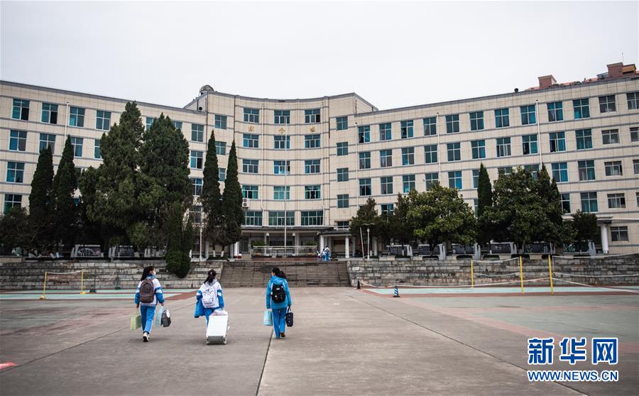 3月15日,烏當中學高三學生走向教學樓。 當日,貴陽市烏當中學部分高三學生有序返校,準備恢復上課。據(jù)悉,貴州省高三年級和初三年級學生將于3月16日正式開學。 新華社記者 陶亮 攝