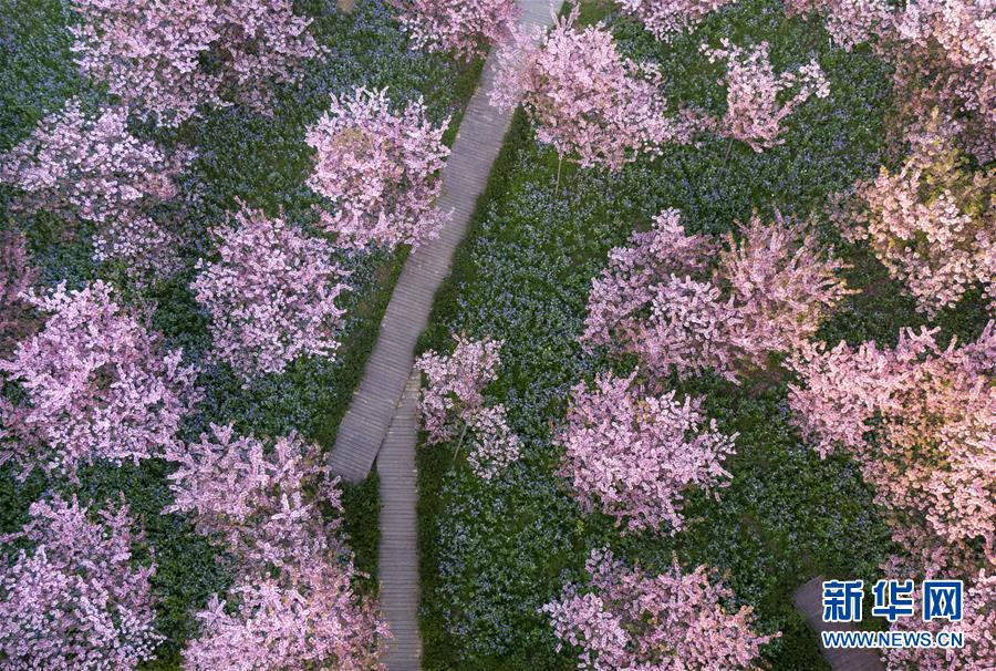 這是3月14日拍攝的武漢東湖磨山櫻園景色(無(wú)人機(jī)照片)。近日氣溫漸升,武漢東湖磨山櫻園里的櫻花漸次盛開(kāi),帶來(lái)春天的氣息。新華社記者熊琦攝