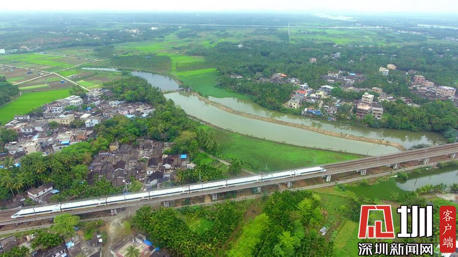 2020年3月17日,海南環(huán)島鐵路一列動車從春光明媚的瓊海城區(qū)經(jīng)過。