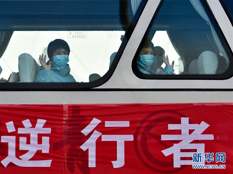 3月17日,醫(yī)療隊(duì)隊(duì)員在青海西寧曹家堡國(guó)際機(jī)場(chǎng)向前來(lái)接機(jī)的人們揮手致意。隨著湖北新冠肺炎疫情形勢(shì)好轉(zhuǎn),當(dāng)日,援鄂醫(yī)療隊(duì)開(kāi)始有序撤回,陸續(xù)抵達(dá)各地。新華社記者張龍攝