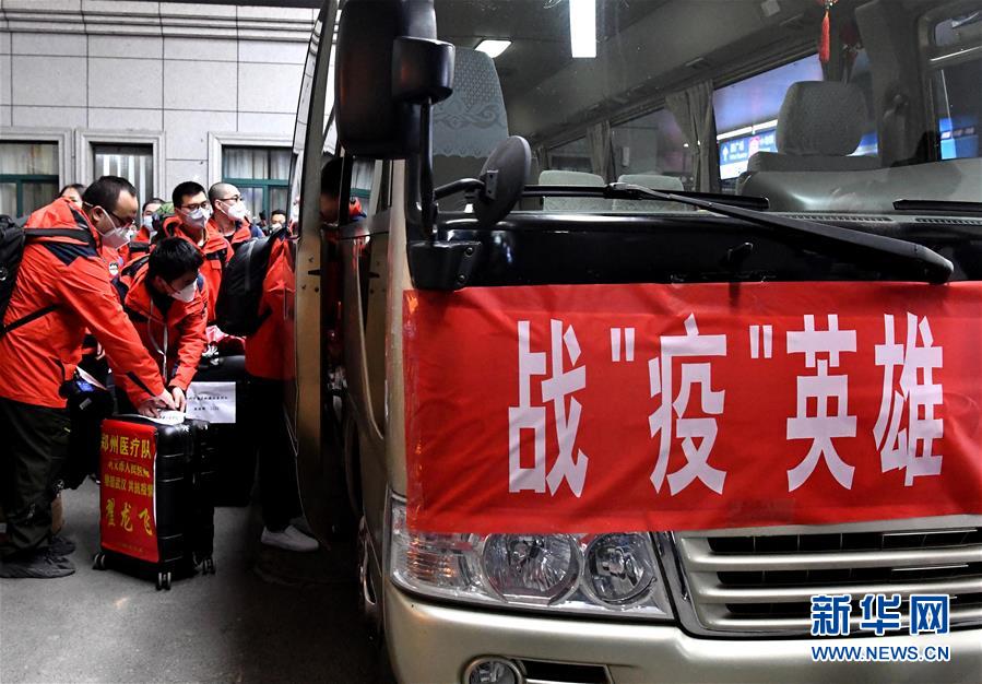 3月17日,醫(yī)療隊(duì)隊(duì)員在河南鄭州東站乘坐大巴車。新華社記者李安攝