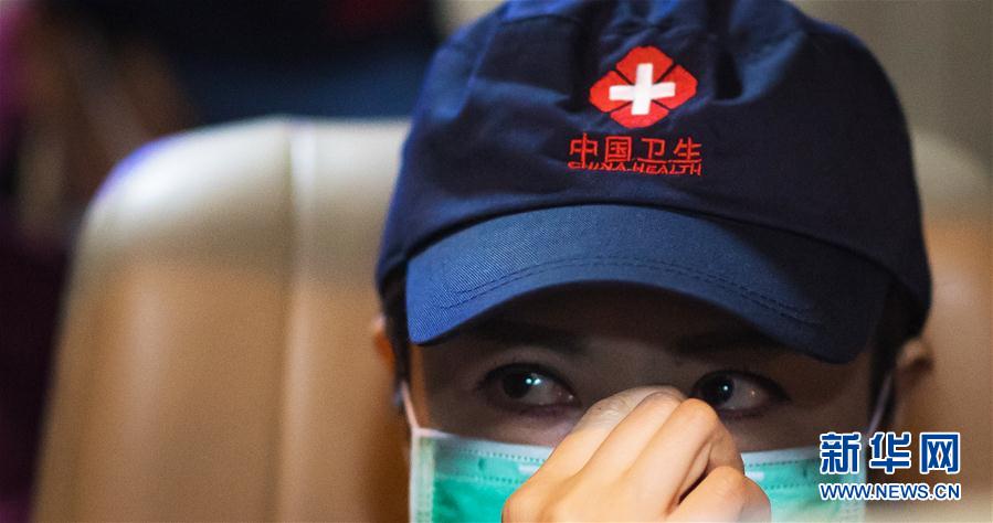 3月17日,陜西國家緊急醫(yī)學(xué)救援隊(duì)隊(duì)員閔渝婷在返程途中擦拭眼淚。新華社記者肖藝九攝