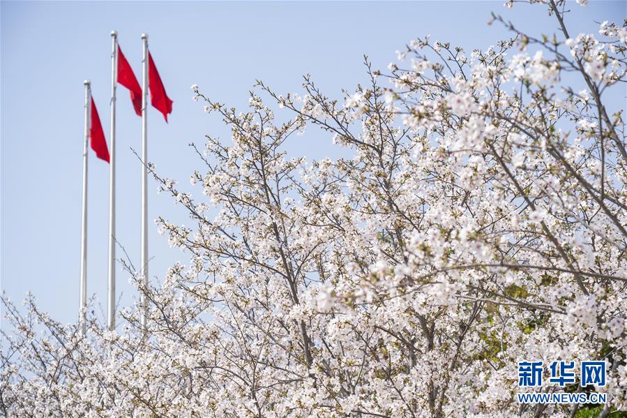 在武漢市武昌區(qū)被網(wǎng)友稱為“武漢最美停車場”的湖北日報停車場,櫻花開放(3月19日攝)。  新華社記者 才揚 攝