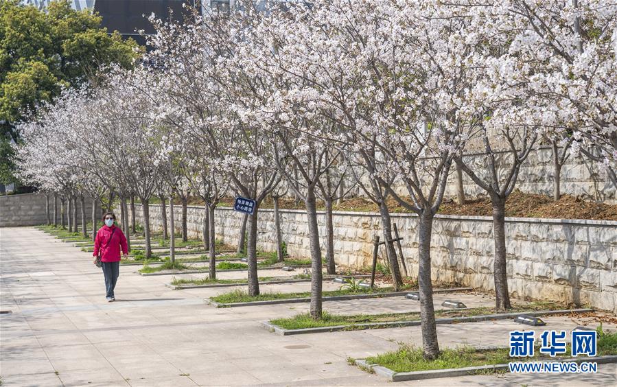 3月19日,在武漢市武昌區(qū)被網(wǎng)友稱為“武漢最美停車場”的湖北日報停車場,一名工作人員從櫻花樹邊經(jīng)過。  新華社記者 才揚 攝
