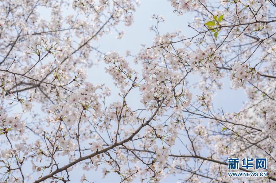 在武漢市武昌區(qū)被網(wǎng)友稱為“武漢最美停車場”的湖北日報停車場,櫻花開放(3月19日攝)。 新華社記者 才揚(yáng) 攝