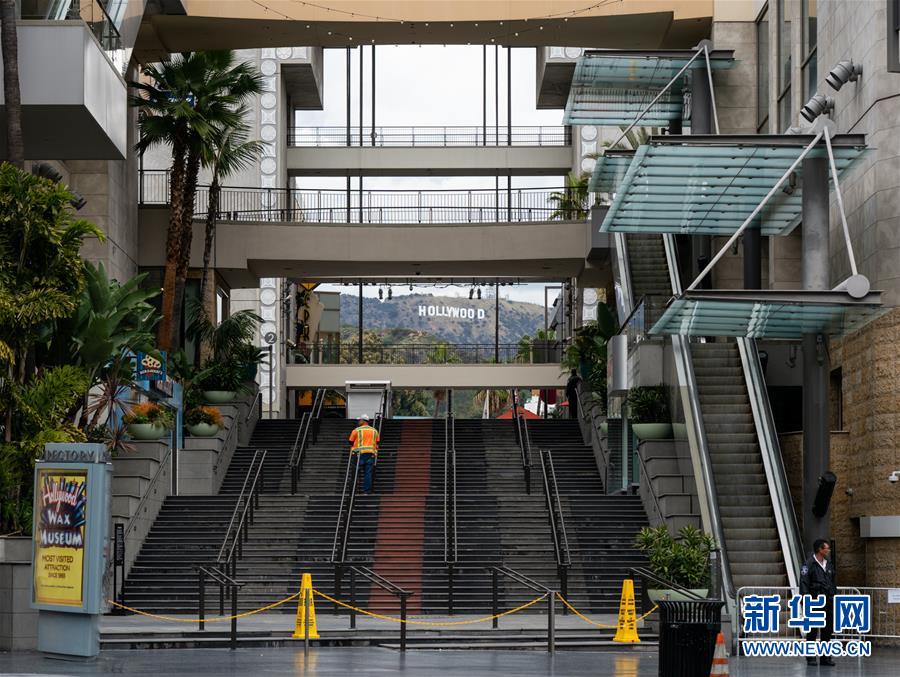 3月20日,在美國(guó)加利福尼亞州洛杉磯,星光大道上的一家商場(chǎng)停止?fàn)I業(yè)。 新華社發(fā)(錢衛(wèi)忠攝)