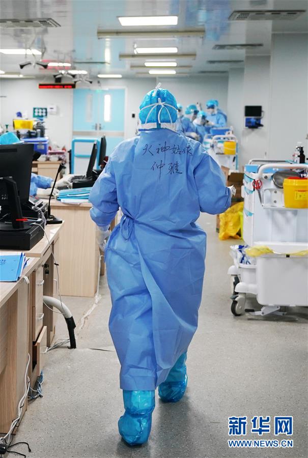 80后護士仲雅快步走向患者床旁準備護理(3月20日攝)。 武漢火神山醫(yī)院重癥醫(yī)學一科的護理團隊共50名護士,其中絕大多數(shù)是80后、90后女性,她們不懼危險,奮戰(zhàn)在抗擊疫情的最前沿“紅區(qū)”。 新華社記者王毓國攝