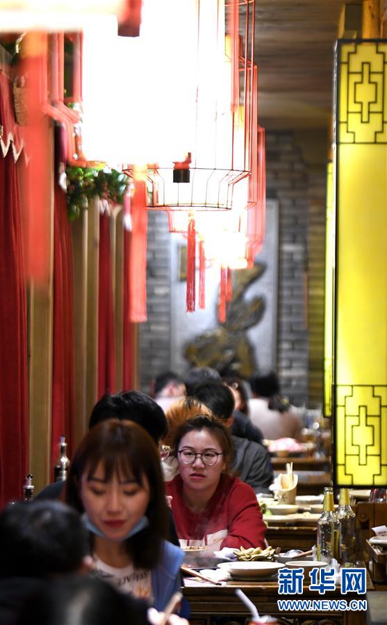 3月21日,在四川省成都市錦江區(qū)商業(yè)場街的一家火鍋店內(nèi),顧客在就餐。近日,在做好新冠肺炎疫情防控措施的基礎(chǔ)上,四川省成都市的火鍋店逐漸恢復(fù)營業(yè)。新華社記者王曦攝