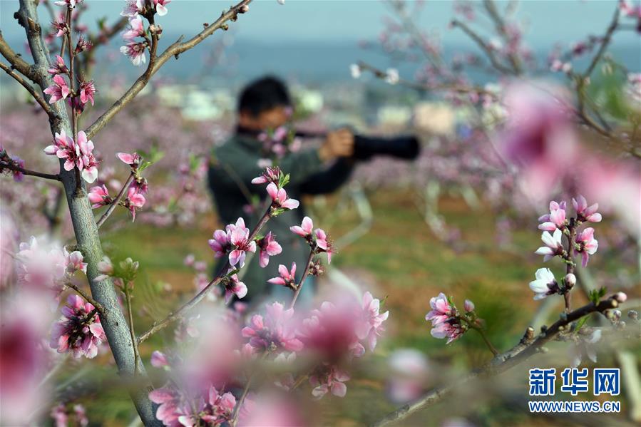 3月22日,游客在云南省曲靖市沾益區(qū)盤(pán)江鎮(zhèn)河西村的果園里拍攝桃花。春季里,云南省曲靖市沾益區(qū)鄉(xiāng)村果園里的桃花梨花競(jìng)相綻放,景色秀美,吸引游人前來(lái)觀光。新華社記者楊宗友攝