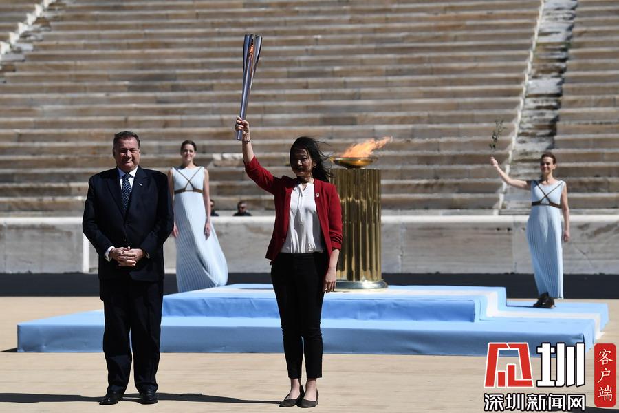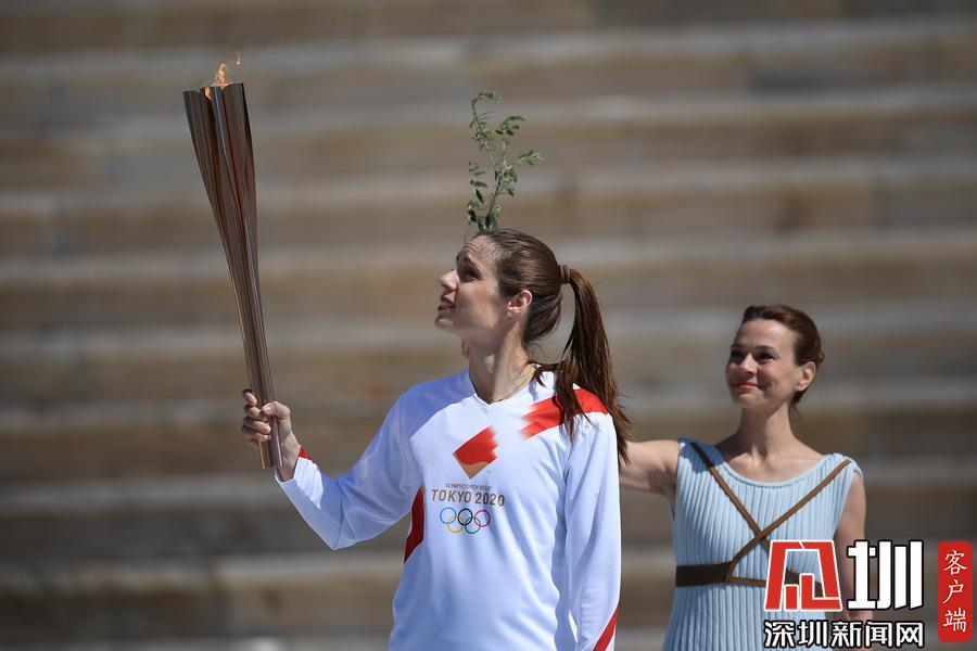 2020年3月18日,2020年東京奧運(yùn)會火炬交接儀式在希臘雅典帕納辛奈科體育場舉行。