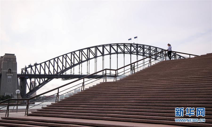 3月24日,一名游客站在澳大利亞悉尼歌劇院前。 新華社記者 白雪飛 攝