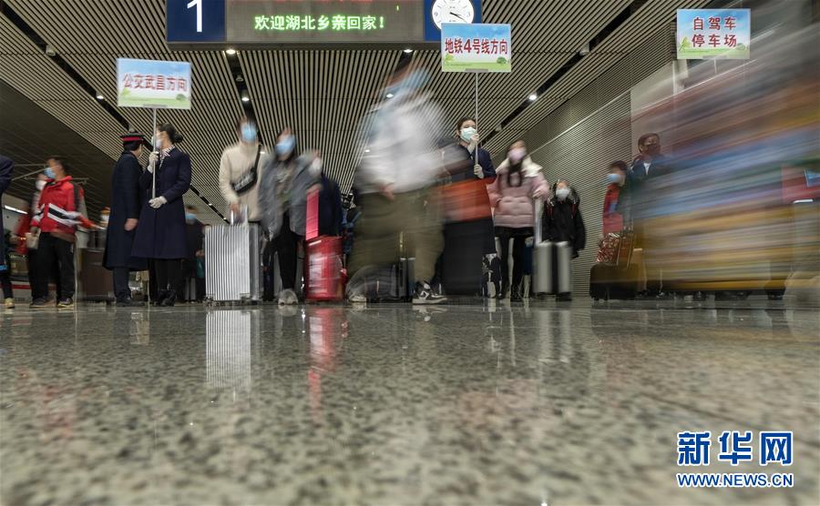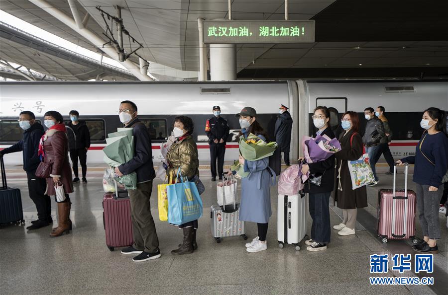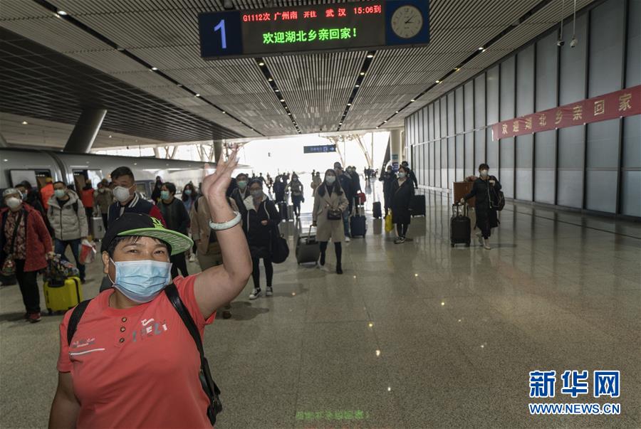 當(dāng)日零時起,武漢市恢復(fù)鐵路客站到達(dá)業(yè)務(wù),1.2萬多名湖北鄉(xiāng)親乘坐高鐵列車從全國各地回家。
