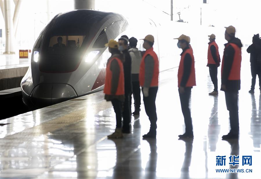 3月28日,工作人員迎來徐徐進(jìn)站的G1112次列車。新華社記者費茂華攝