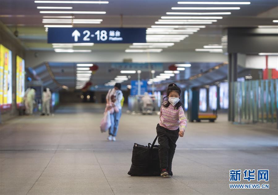 3月28日,在漢口火車站,一名小朋友幫家長提行李出站。當(dāng)日零時起,武漢市恢復(fù)辦理鐵路客站到達(dá)業(yè)務(wù)。為做好抵漢旅客組織工作,武漢三大火車站安排專人提前與列車對接,核對下車人數(shù),并組織工作人員和鐵路志愿者提前在站臺等候接車,做好組織引導(dǎo)。列車到達(dá)后,車站配合防疫部門做好旅客出站測溫、登記信息等工作,并和公交集團(tuán)、地鐵公司聯(lián)動,引導(dǎo)旅客按照去向有序換乘。新華社記者肖藝九攝