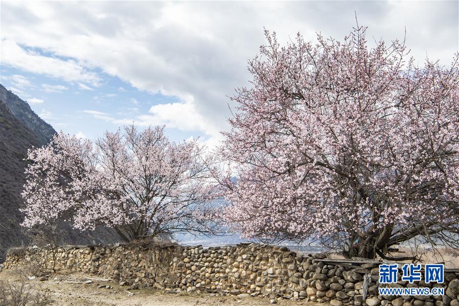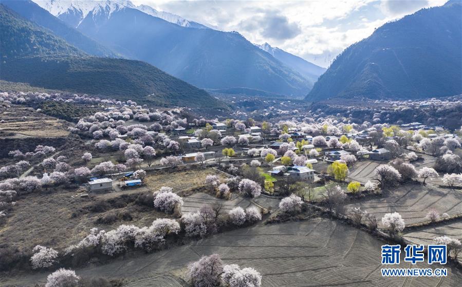 這是3月26日拍攝的西藏林芝市波密縣境內桃花盛開的田園風光。新華社記者 晉美多吉 攝