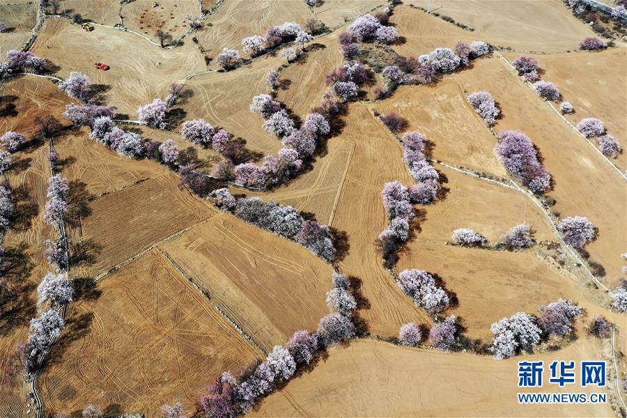 3月26日,西藏林芝境內盛開的桃花(無人機照片)。新華社記者 孫非 攝