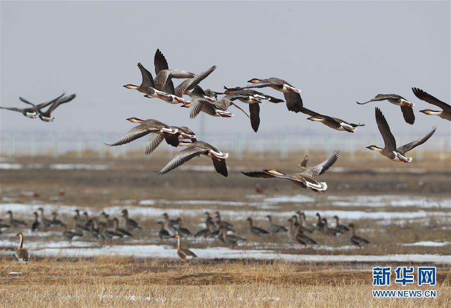 這是4月1日在張北縣黃蓋淖國(guó)家濕地公園拍攝的候鳥(niǎo)。 新華社記者楊世堯攝