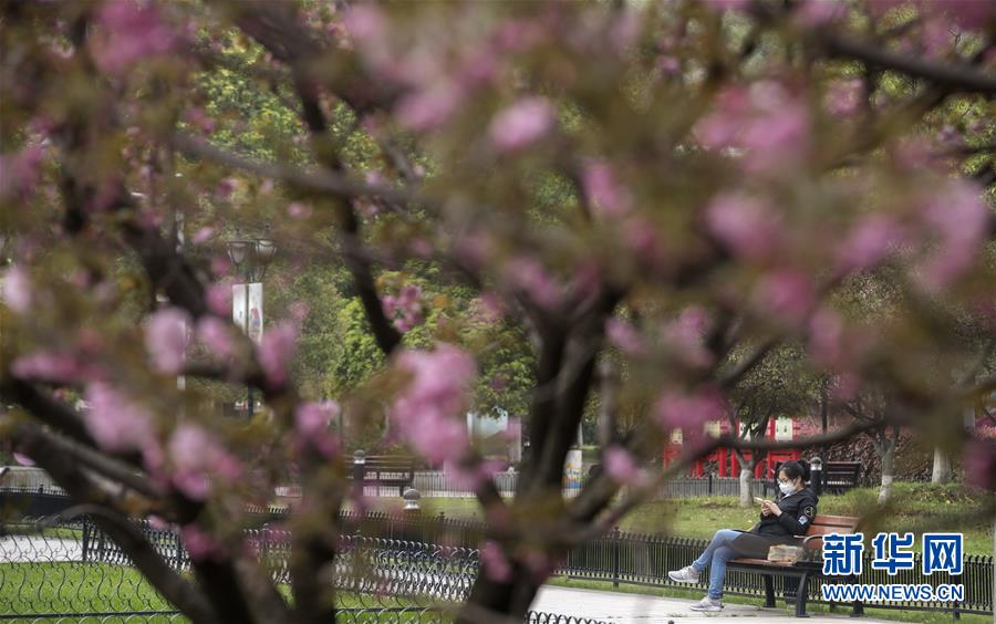 3月25日,在武漢的一個街心花園,市民在長椅上休息。新華社記者費(fèi)茂華攝