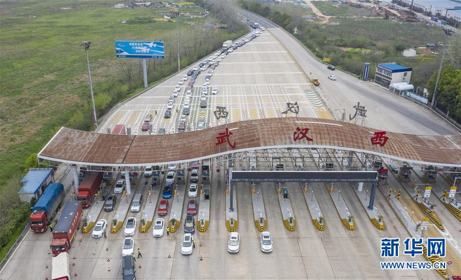 3月24日,在武漢西高速收費(fèi)站交通卡點(diǎn),返漢車輛排隊等候入城(無人機(jī)照片)。當(dāng)日,湖北省新冠肺炎疫情防控指揮部發(fā)布通告說,湖北省除武漢市以外地區(qū),將于3月25日起解除離鄂通道管控,武漢市將于4月8日起解除離漢離鄂通道管控措施。隨著近日武漢部分企業(yè)逐漸復(fù)產(chǎn)復(fù)工,進(jìn)入武漢的返城務(wù)工人員陸續(xù)增多,車輛在武漢西高速收費(fèi)站交通卡點(diǎn)有序排隊返回武漢。工作人員對返城人員檢查體溫,并核查證明健康的“綠碼”和身份證后放行。新華社記者才揚(yáng)攝