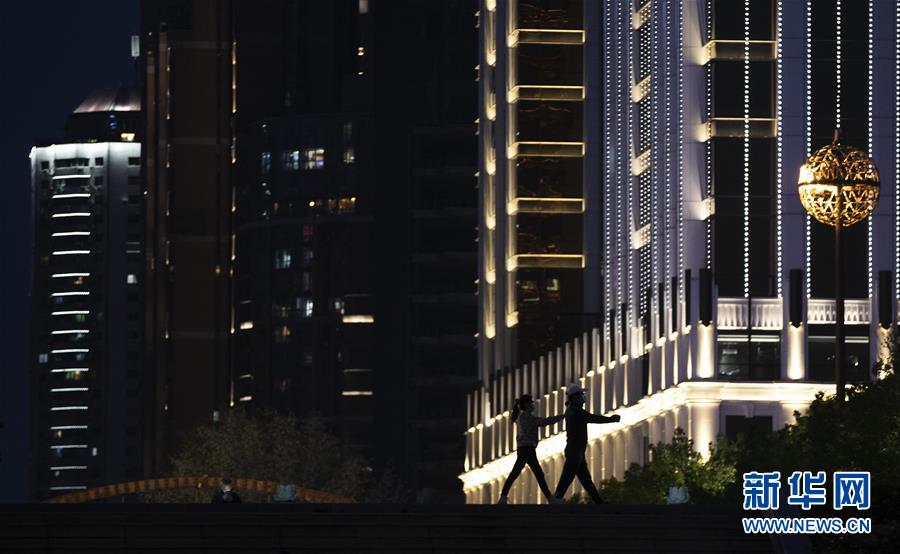 4月1日傍晚,市民在江堤上健身。新華社記者費茂華攝